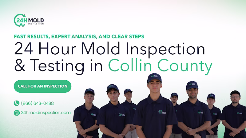 24H Mold Inspection of Collin County is a Home inspector focused on fast, reliable mold assessments for homeowners and property managers in Collin County and surrounding areas. If you notice musty odors, recent leaks, or unexplained allergy symptoms, call to book a 24-hour inspection and request both air and surface sampling with a clear remediation roadmap. Prepare by clearing access to attics, crawlspaces, and HVAC, and have recent water-damage details ready so they can complete a thorough moisture check and deliver a report you can use for insurance or contractor quotes. Contact 24H Mold Inspection of Collin County today to secure a prompt appointment and protect your indoor air quality.